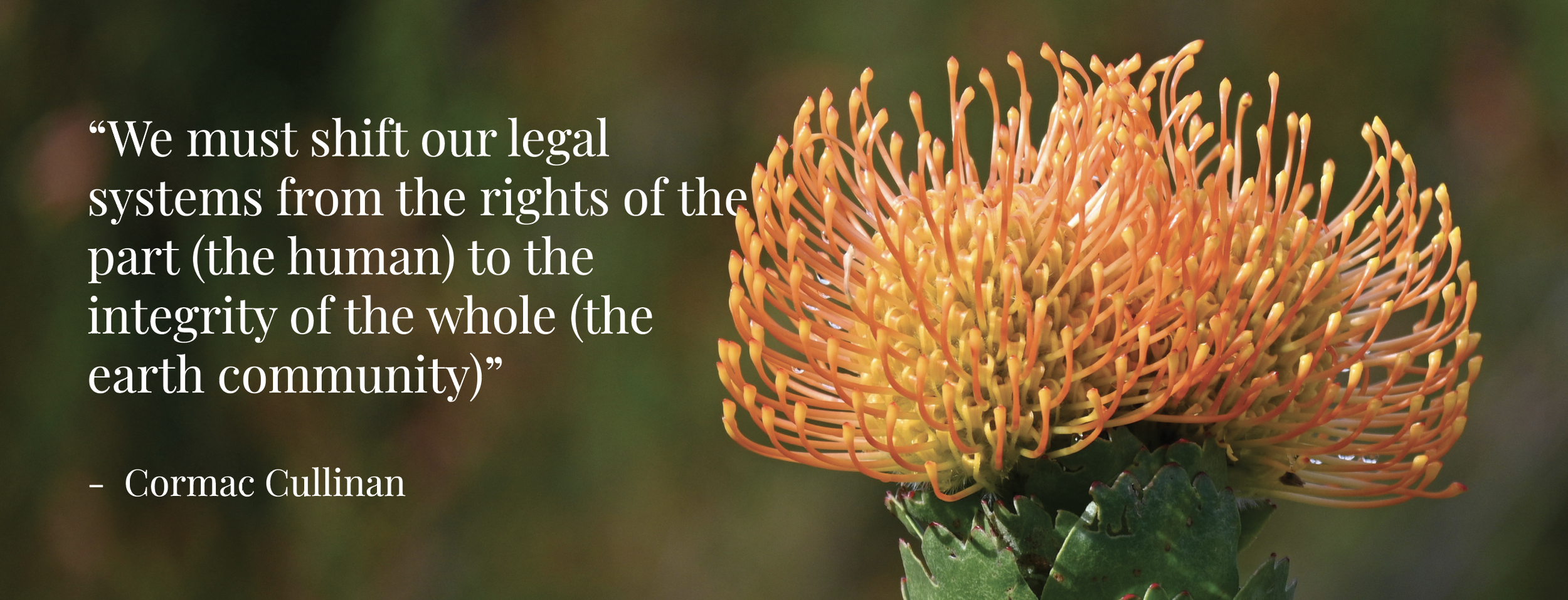 Our mission is to develop governance systems for ecologically sustainable and just societies by pioneering the application of Earth jurisprudence and advancing the recognition of the rights of Nature.